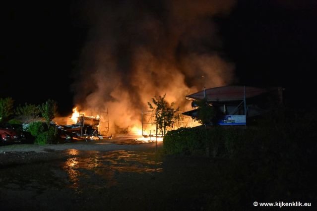 VALKENSWAARD - Maandagnacht zijn zo'n 300 kano's door brand verwoest. De kano's stonden op het terrein van recreatiebedrijf Rofra aan de Molenstraat. Meerdere brandweerwagens kwamen ter plaatse. De politie gaat uit van brandstichting. De forensische dienst doet ter plaatse onderzoek en de politie hoort getuigen en doet en buurtonderzoek.